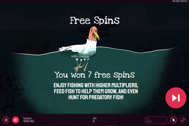 Muddy Waters has a Fishing feature, where multipliers double up as you reel fish into your boat. It also offers free spins that are activated when you hit 2 or more canned worm scatters.