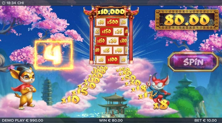 You also get 2 extra reels which summon lucky spirits Chi and Mow for even bigger prizes. See it to believe it!