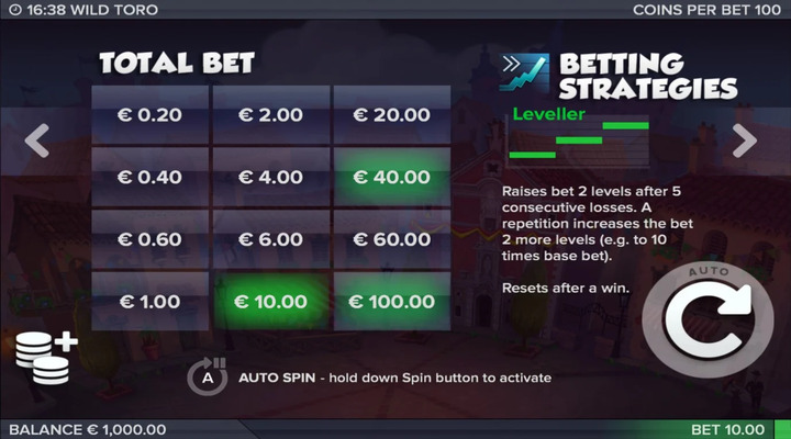 You can find the Betting Strategy settings in the Bet menu in any ELK game, just hit the chip stack icon in the bottom left.
