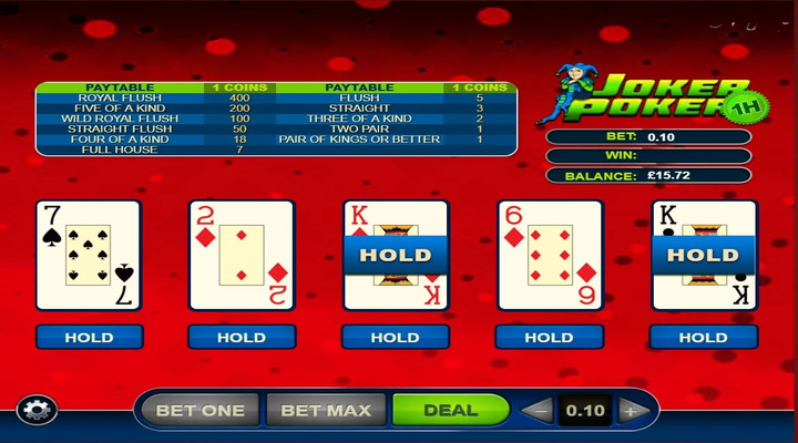 Joker Poker: Play with a 53-card deck including a joker which is wild. Kings is the minimum winning hand.