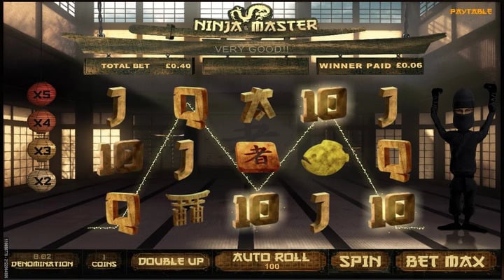 Ninja Master is one of our faves! A 20-payline slot that pays both ways, the Ninja Master slot game has floating symbols, Free Spins, a bonus game and a fun Gamble feature where you pick from sacks of gold or rice.