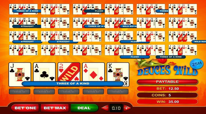 Deuces Wild: Classic version where 2s can be used to make any hand and 3-of-a-kind is the lowest winning hand.