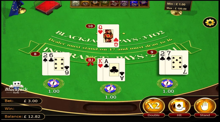 In the GVG European Turbo Blackjack game version, you can only double down or split in certain situations, whereas in the American game it’s more of a free-for-all where you do whatever you want, when you want!